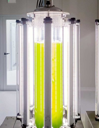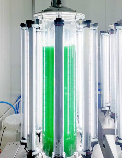 Photobioreactors, optimal habitat for controlled growth of microalgae.