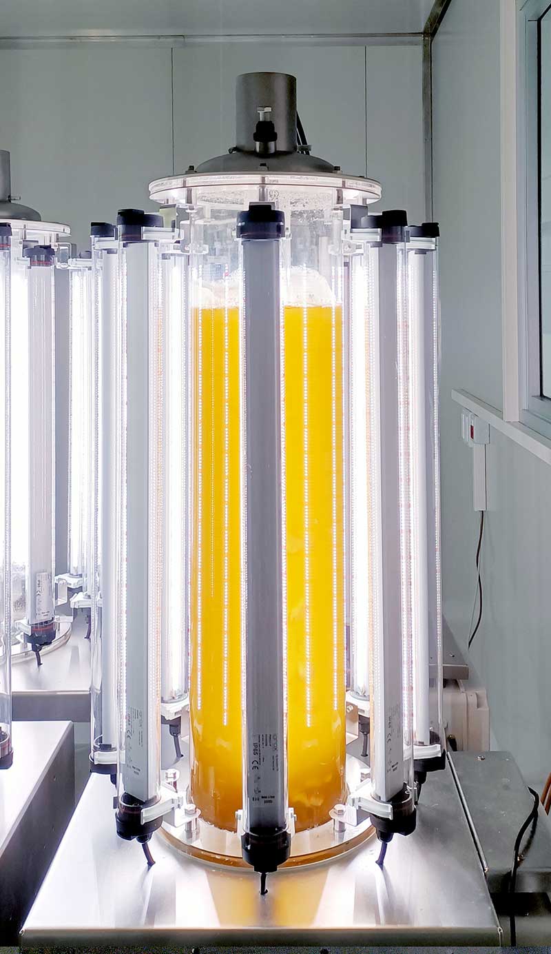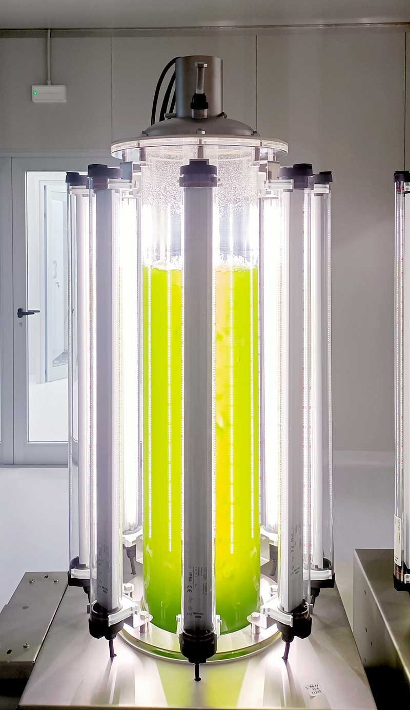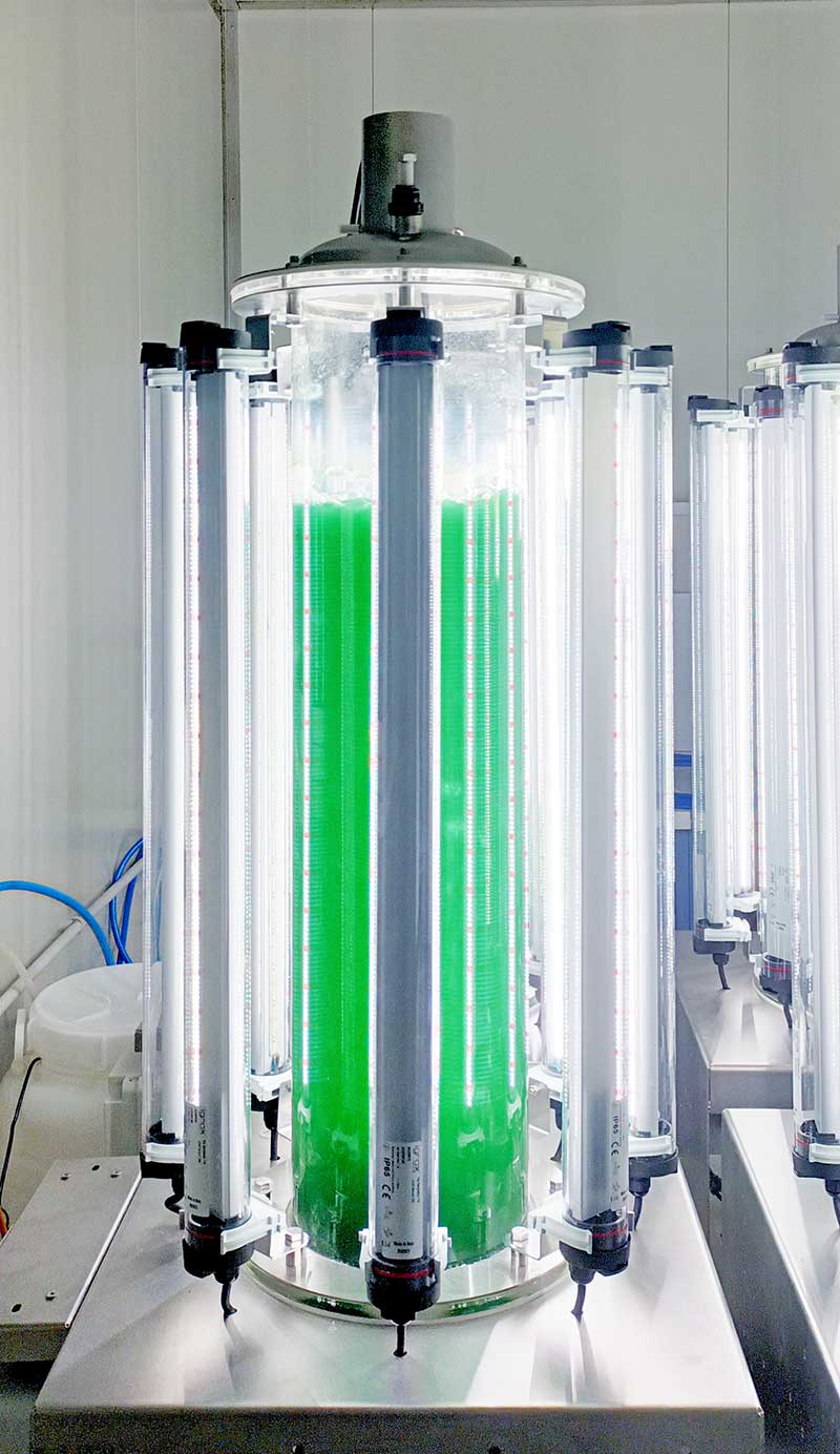 Production within the photobioreactors ensures the sterility of the microalgae growth conditions.